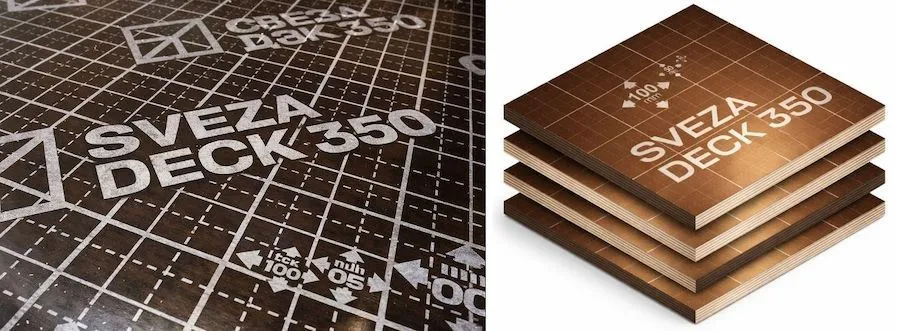 SVEZA Deck 350 — это ламинированная фанера с заводской разметочной сеткой, предназначенная для использования в конструкция для монолитного литья бетона: